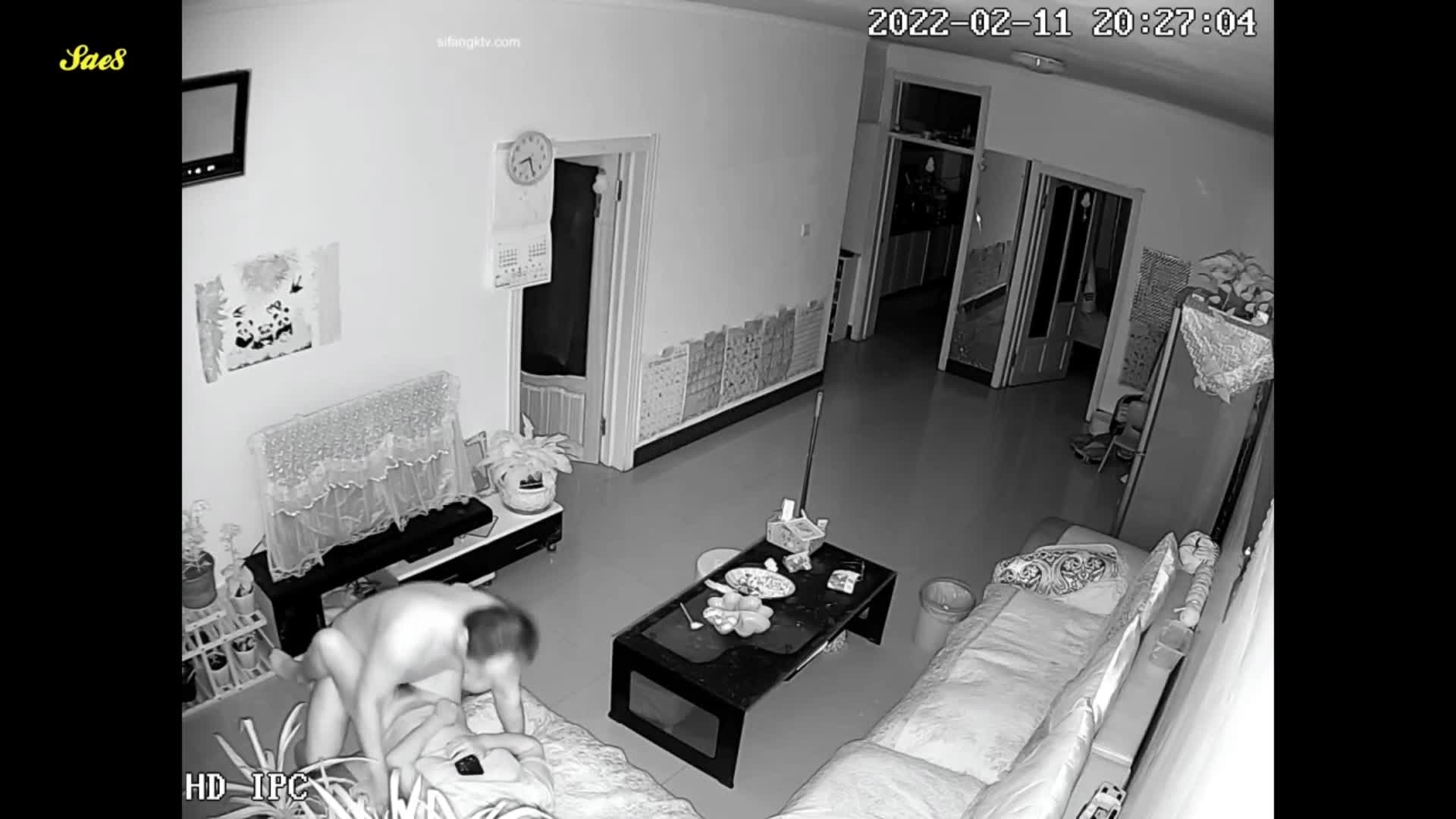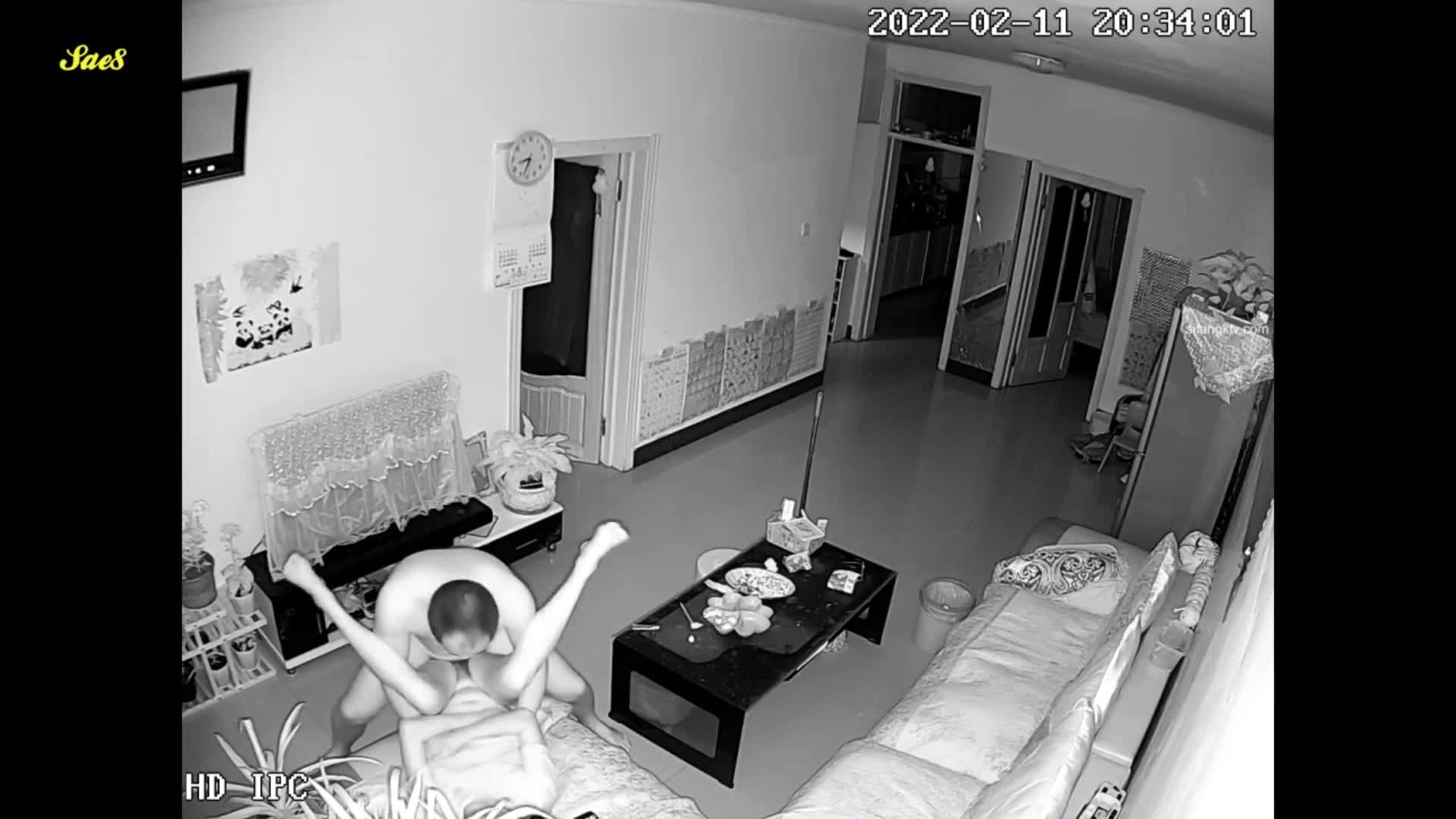 家庭摄像头夜视偷拍姐夫夜袭来探亲的小姨子。